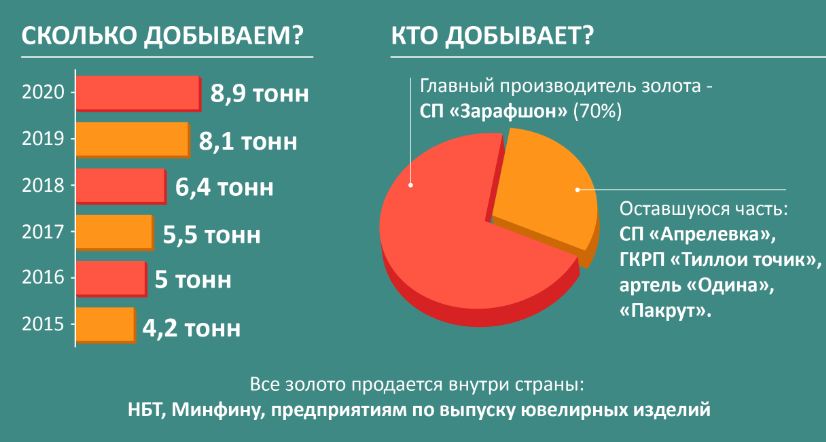 За последние пять-шесть лет выпуск золота увеличился в 2,1 раза: с 4,2 тонн в 2015 году до 8,9 тонн 20202 году. Читайте нас в Telegram, Facebook, Instagram, Viber, Яндекс.Дзен, OK и ВК. Свои вопросы, сообщения, видео и фото присылайте на Viber, Telegram, Whatsapp, Imo по номеру +992 93 792 42 45.