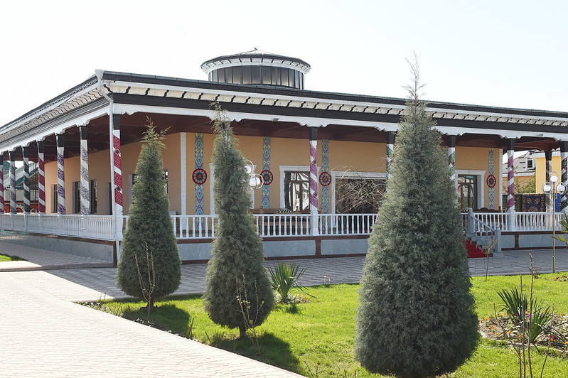 Затем глава государства принял участие в открытии гостиницы и центра обслуживания «Истаравшан». Гостиница в сельском джамоате Зархалол построена в рамках Годов развития села, туризма и народных ремёсел.