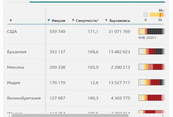 На первом месте по количеству инфицированных находятся США — 31,1 млн.