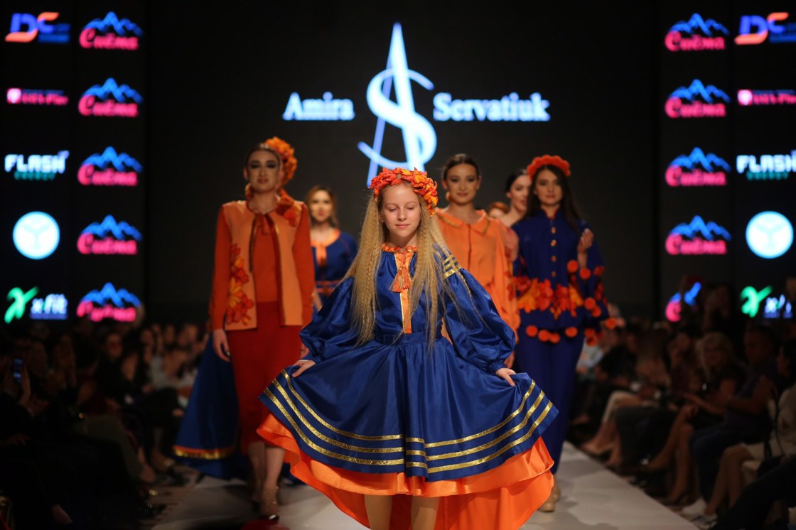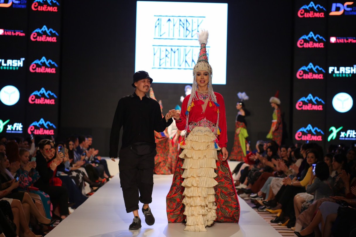 После Умед Кучкалиев передал подиум гостю, своему казахстанскому коллеге Алтынбеку Ермихану. Стиль его коллекции, также состоящей из 12 луков — национальная этника в сочетании с современными тенденциями моды, а именно, европейским кроем и более смелыми и откровенными образами. Красивые и эпатажные казахские головные уборы, украшенные перьями и мехом, очень гармонично и в то же время экзотично смотрелись в комплекте с коротким платьями выше колена и открытыми плечами. В общем, зрителя удивить удалось, причем в хорошем смысле.