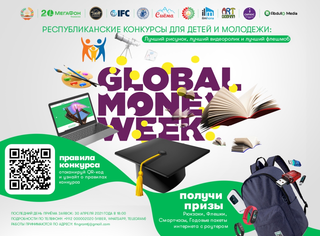 GlobalMoneyWeek 2021 проходит с 1 по 30 апреля. Конкурс творческих работ включает уже знакомые номинации: «Лучший рисунок», «Лучший видеоролик» и «Лучший флеш-моб» по финансовой грамотности. Отправлять их нужно по адресу [email protected] или в мессенджерах Viber, WhatsApp, Telegram на номер +992000002020 от компании «МегаФон Таджикистан». Призы для победителей также предоставит первый оператор новых цифровых возможностей.