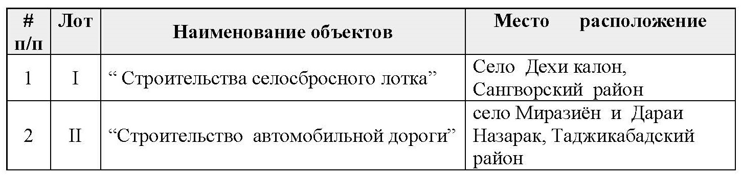 Программа Поддержки Развития Обществ Горных Регионов (ППРОГР) — проект Фонда Ага Хана Таджикистан, при финансовой поддержке Швейцарского Агентства по развитию и cотрудничеству (SDC), в рамках проекта «Интегрированный подход к улучшению здоровья и среды обитания» в Раштской долине, приглашает всех заинтересованных, правомочных лиц подать заявки в запечатанных конвертах на выполнение следующих строительно-ремонтных работ: