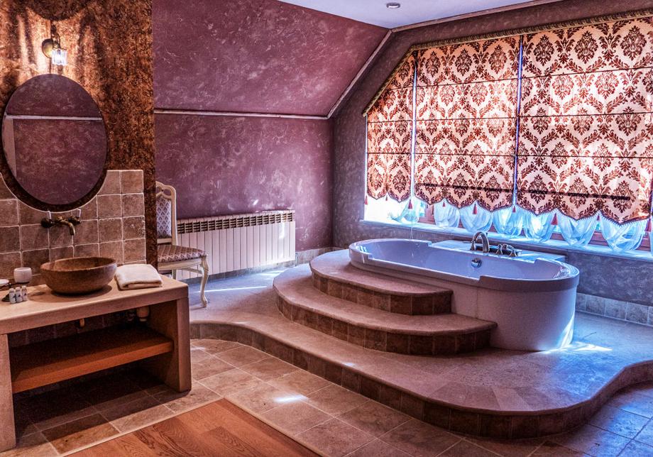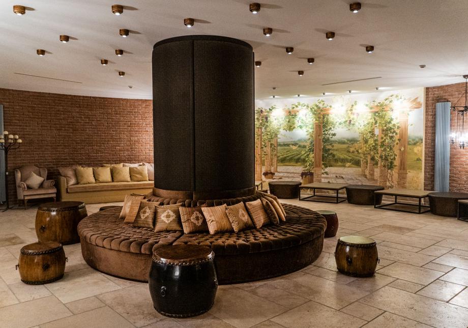 На первом этаже гостиницы расположен японский сад и большой зимний бассейн. В подвале находятся кинозал, винный погреб и дискотека. Каждое помещение имеет собственный дизайн, сочетающий футуристические мотивы с барокко. Внешние площадки густо засажены садом фруктовых и декоративных деревьев.