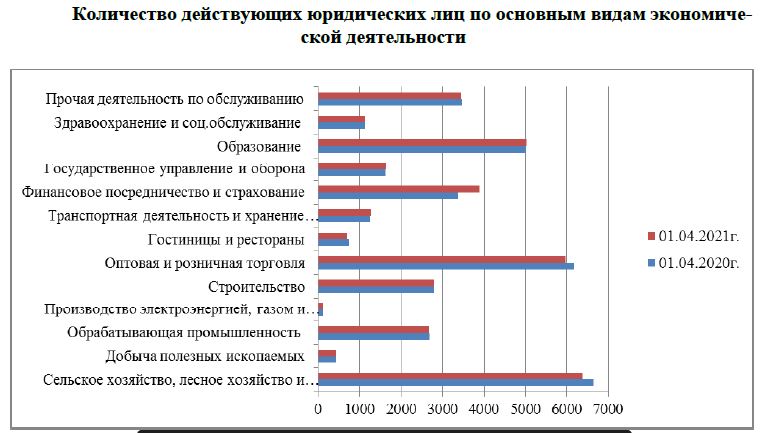 Численность действующих хозяйствующих субъектов на 1 апреля 2021 года составила 343,8 тысяч, среди которых более 35,8 тысяч компаний и около 308 тысяч индивидуальных предпринимателей.