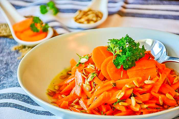 Морковь — тоже очень полезный овощ для организма, в нем присутствует богатый витаминный состав: витамины группы В, РР, С, Е, К, каротин — вещество, которое в организме человека превращается в витамин А. А еще морковь содержит 1,3 % белков и 7 % углеводов. Немало в моркови минеральных веществ, необходимых для организма человека: калия, железа, фосфора, магния, кобальта, меди, йода, цинка, хрома, никеля, фтора и др. В моркови содержатся эфирные масла, которые обусловливают ее своеобразный запах.