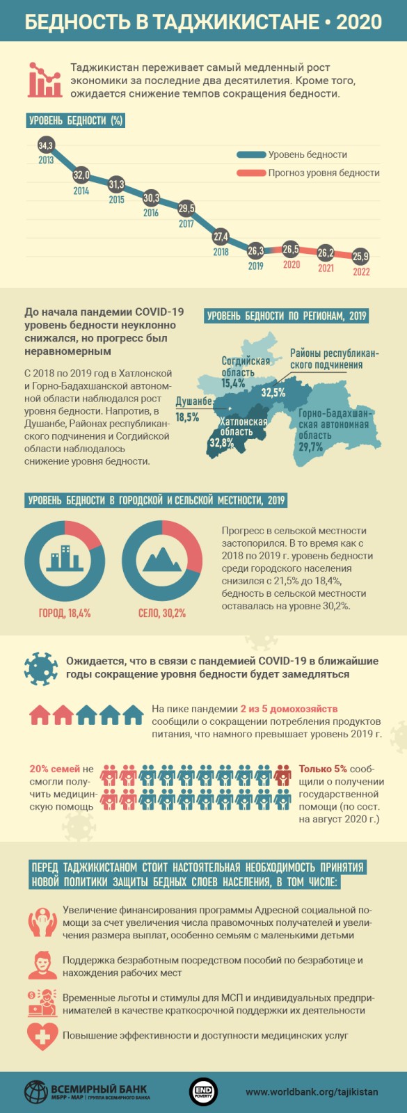 Всемирный банк в прошлом году в связи с пандемией прогнозировал рост уровня бедности в стране по итогам 2020 года — до 26,6%.