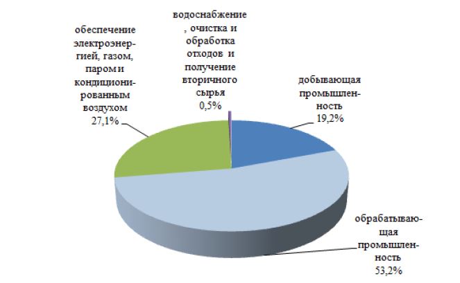 Добывающий сектор занимает около 20% промышленности, на долю обрабатывающего сектора приходится более 53%, а на сектора электроснабжения, подачи газа, пара и кондиционирования воздуха приходится около 28%.