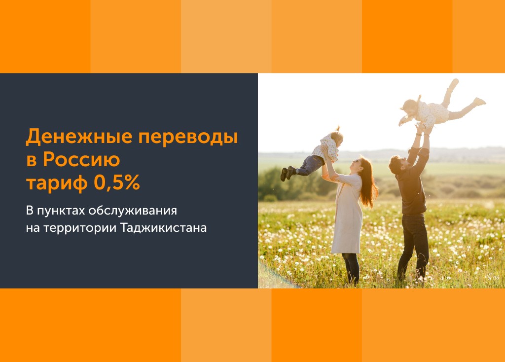 В период действия акции, клиентская комиссия за отправку переводов из Таджикистана в Россию снижена до 0,5% от суммы перевода.