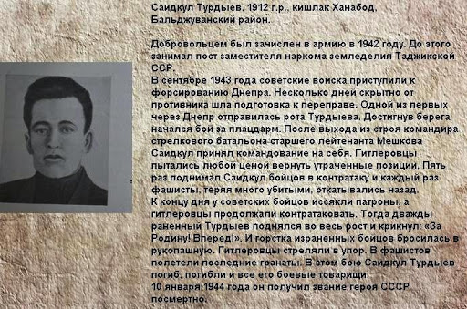 1912-1943 – Родился Герой Советского Союза Саидкул Турдыев.