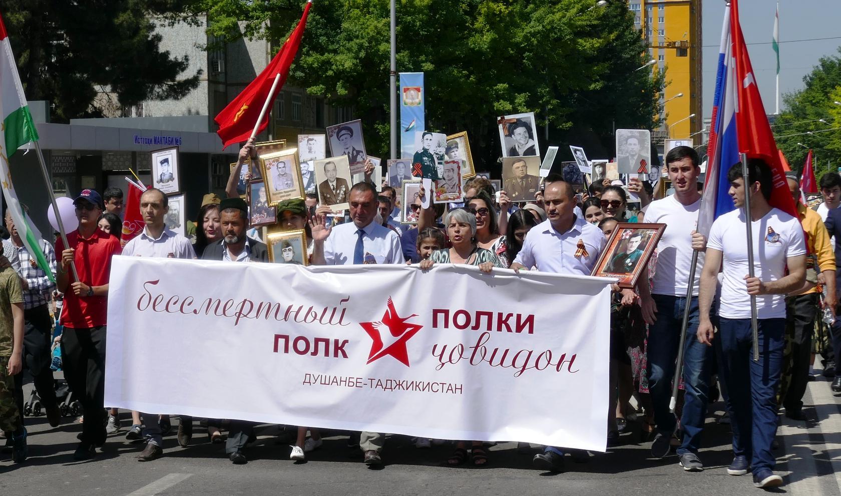 Для горожан это мероприятие стало очень памятным: впервые "Бессмертный полк" в Душанбе собрал такое большое число людей, вставших в колонны с лицами своих родственников-ветеранов — дедов и прадедов, прабабушек и бабушек.