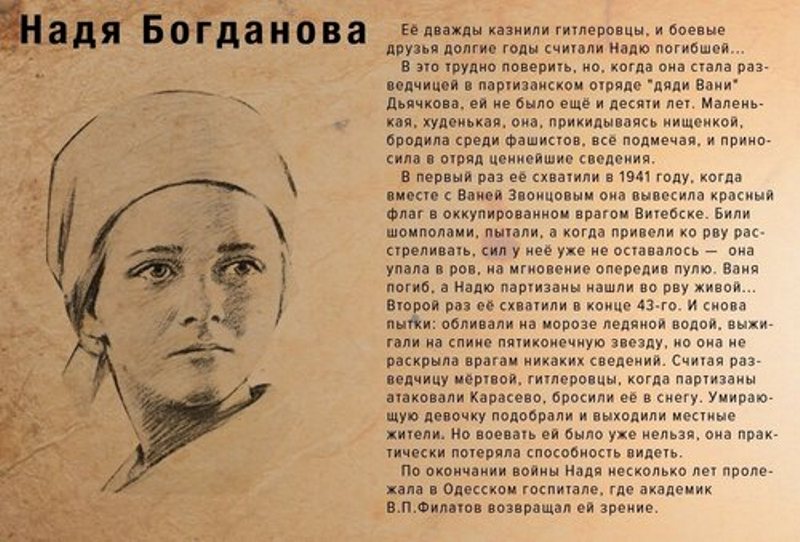 Сегодня у нас с вами над головой то самое мирное небо, ради которого сражались и умирали дети, герои и героини нашей статьи, трудно представить, как они, маленькие, могли жертвовать собой, терпеть боль и пытки, но не выдавать своих, мученически отправляться на казнь.