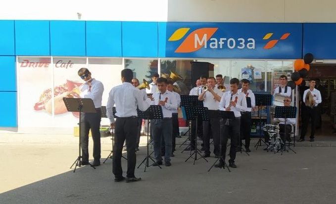 Под звуки духового оркестра сотрудники Газпромнефти и клиенты АЗС исполнили знаменитые "День Победы", "В землянке", "Темная ночь", "Журавли", "Смуглянка".