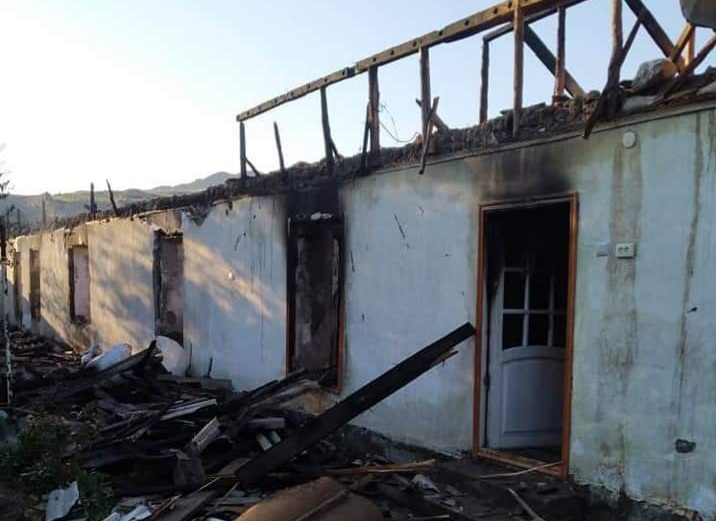 Он отметил, что в результате полностью сгорели четыре комнаты и ванная. По его словам, таджикские пограничники проводят расследование.