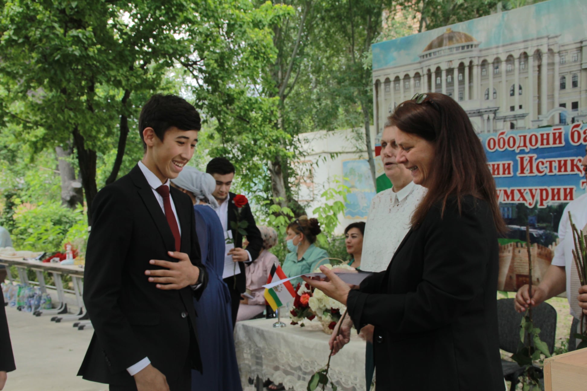 Дипломы учащимся вручили координатор ZfA в Таджикистане Беата Лерке и руководство учебного заведения, сообщил Asia-Plus пресс-секретарь председателя города Худжанда Маъмурхон Юсуфзод.