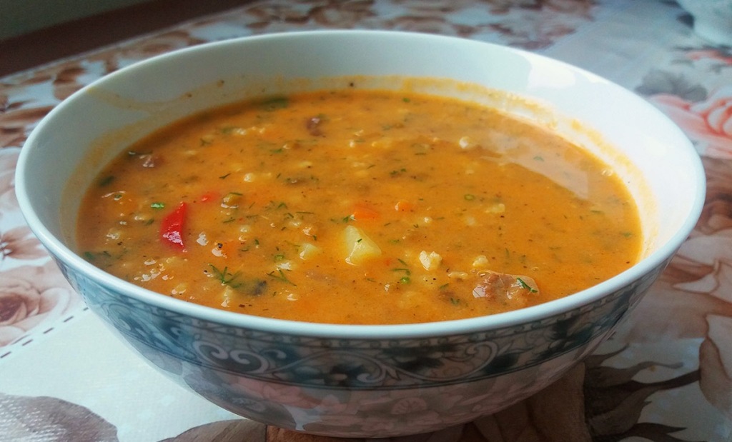 Этот суп является овощным, так как готовится он из нашинкованного соломкой репчатого лука, порезанной кубиками моркови, с добавлением томатного-пюре или свежих помидоров.