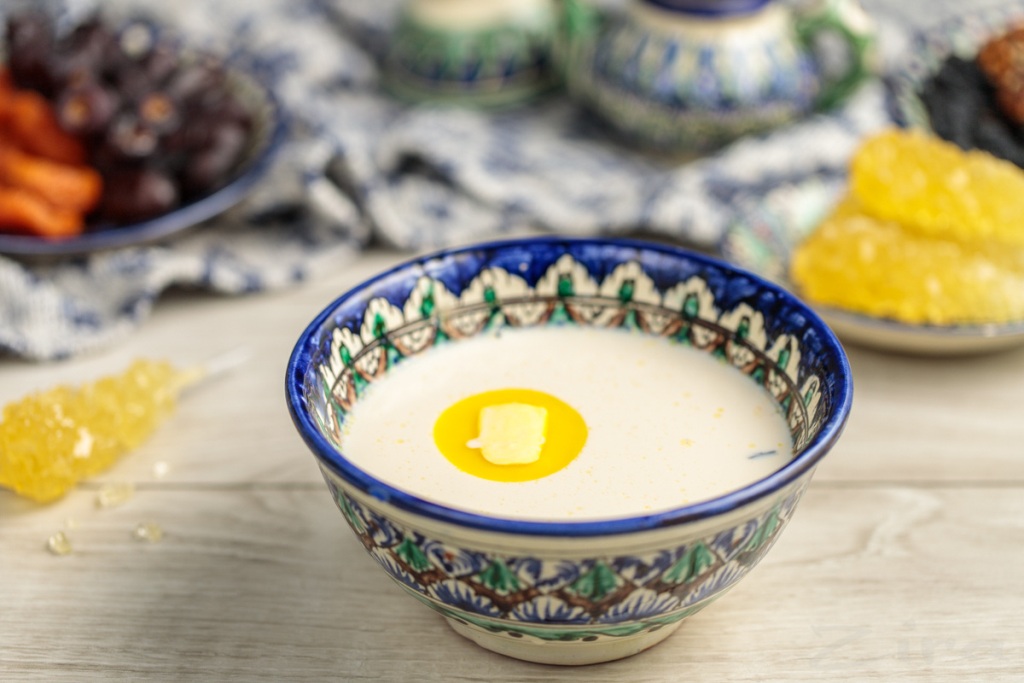 Подают его с добавлением в блюдо кислого молока или кефира.