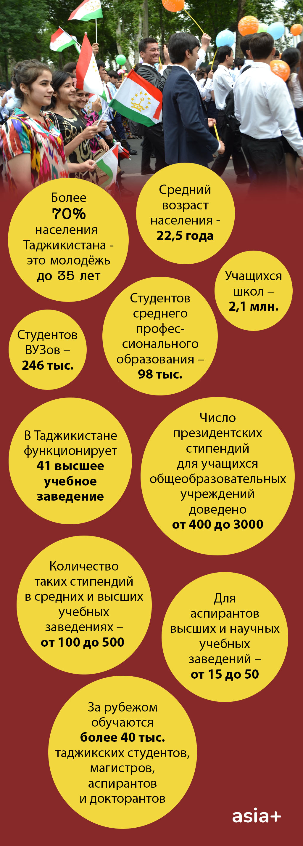 Ежегодно 23 мая в Таджикистане отмечается День молодёжи. Поздравляя молодежь страны с их праздником, президент Эмомали Рахмон 21 мая напомнил, что по статистическим данным, более 70% населения страны составляет молодёжь до 35 лет, поэтому Таджикистан считается страной молодёжи.