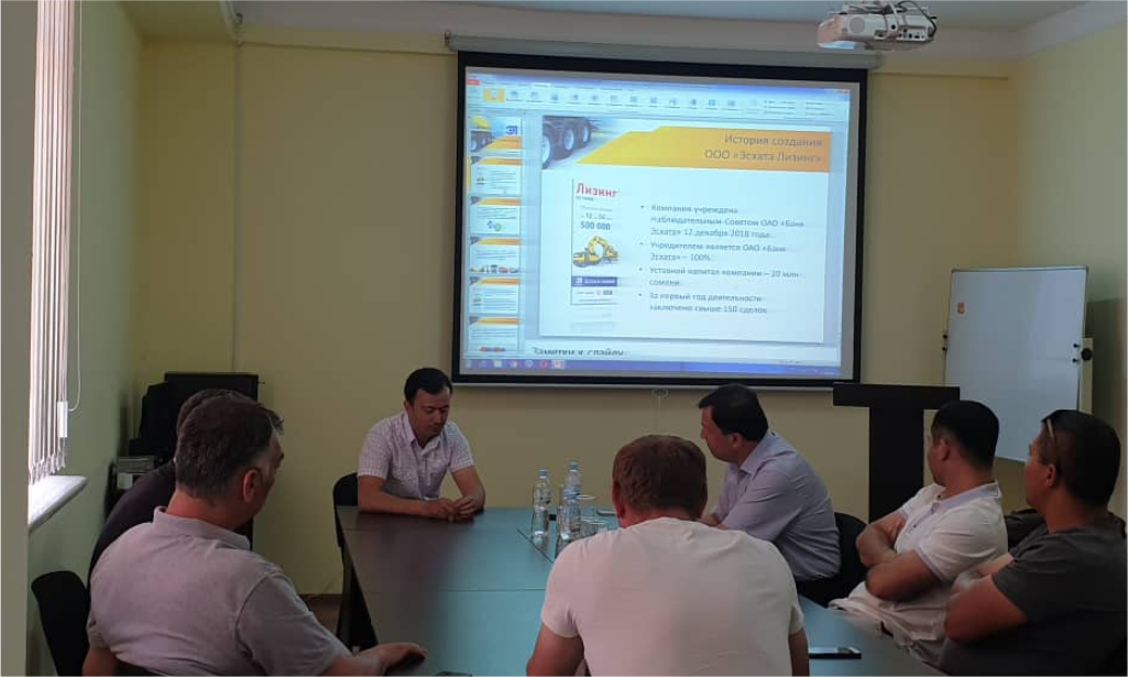 Специалист по продаже «Эсхата Лизинг» Алишер Раджабов ознакомил с условиями продукта. Его преимуществами он назвал лёгкость и доступность получения транспортных средств в лизинг в короткий срок, упрощенный анализ и приемлемые процентные ставки.