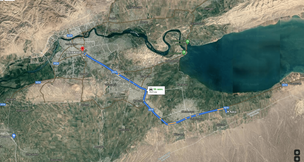 Между Худжандом и столицей Таджикистана Душанбе 300 км, это расстояние можно преодолеть за 5 часов. Кроме этого, за езду по автодороге Худжанд-Душанбе за перевозку груза нужно оплачивать определенную сумму.