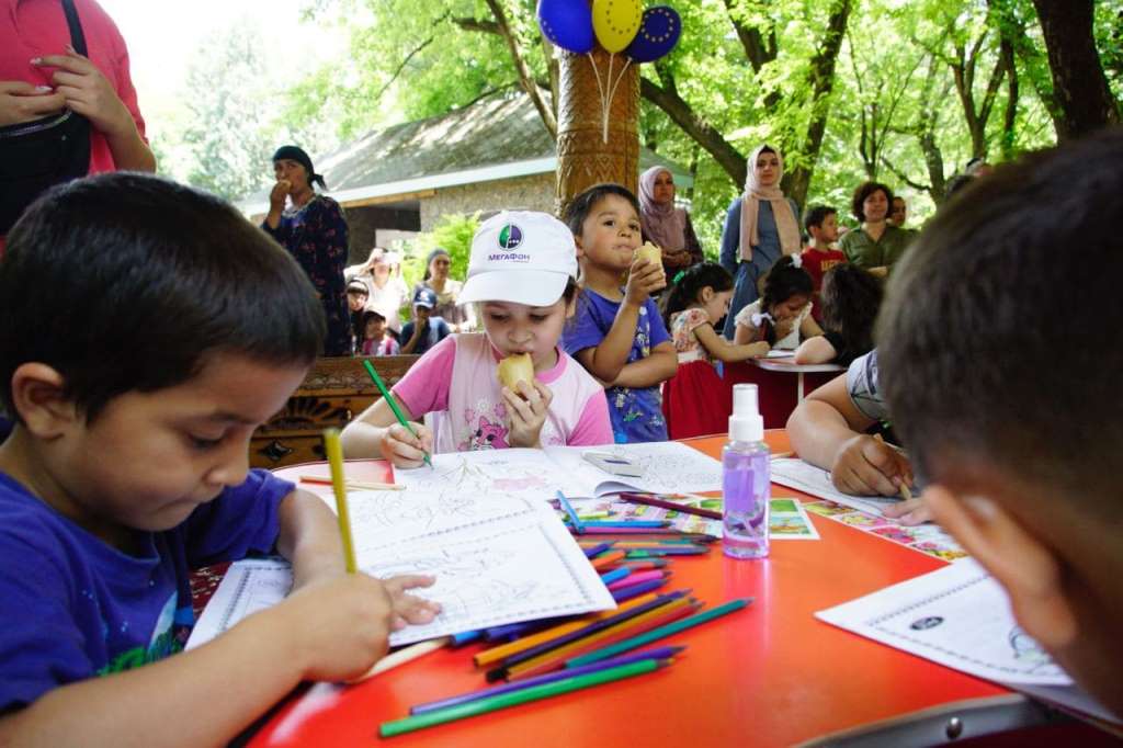 Представительство Евросоюза поддержало художественную зону, и дети могли вдоволь насладиться рисованием и перевоплаотиться в любимых персонажей с помощью фэйс-арта.