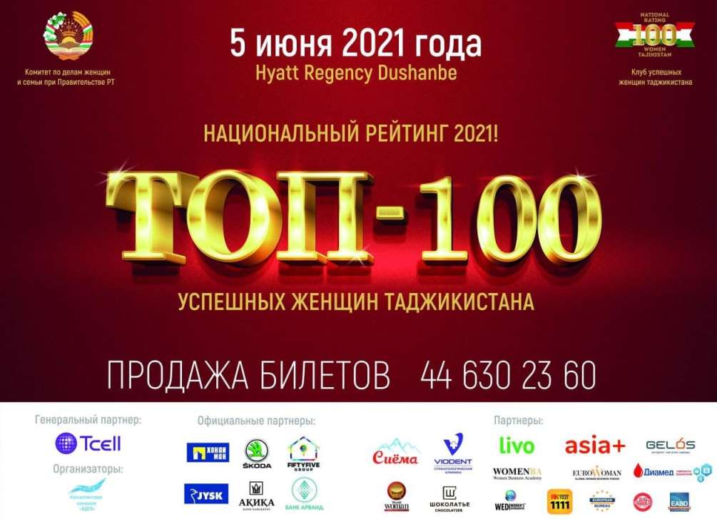 Клуб Успешных Женщин Таджикистана, Комитет по делам женщин и семьи при Правительстве Республики Таджикистан, при организационной поддержке Консалтинговой компании «Идея» объявляют Премию «Топ-100» успешных женщин Таджикистана.