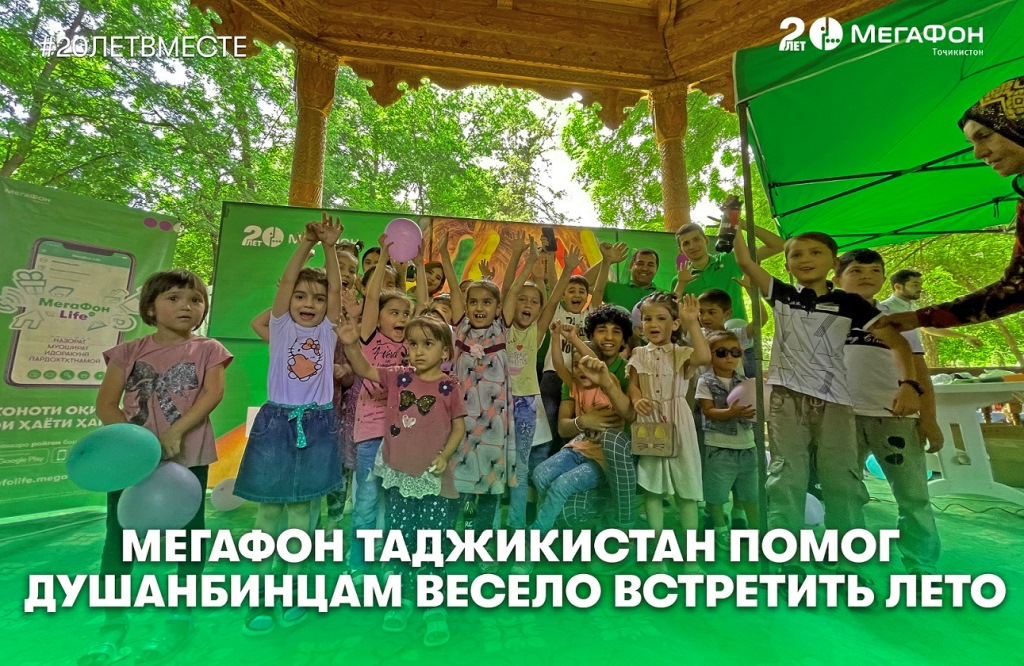 МегаФон Таджикистан стал Digital-партнером фестиваля «Салом, тобистон!» («Здравствуй, лето!»), проведенного медиа-группой «Азия-Плюс» в ботаническом саду города Душанбе. Главными участниками праздника, приуроченного к Международному дню защиты детей, стали, конечно маленькие гости. Им МегаФон приготовил сувениры и угощение, а ребятам постарше – подарки в виде интернет-трафика.