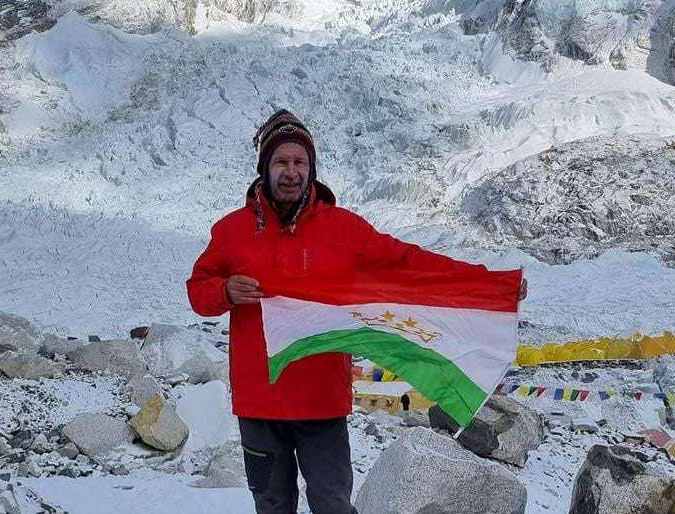 Первым и пока единственным таджикистанцем, покорившим высочайшую вершину земли – Эверест, стал альпинист Виталий Хинензон. Его фотография с обмороженным счастливым лицом и с таджикским флагом в руках, просто взровала таджикский сегмент соцсетей. Отважному альпинисту бравировала вся страна.