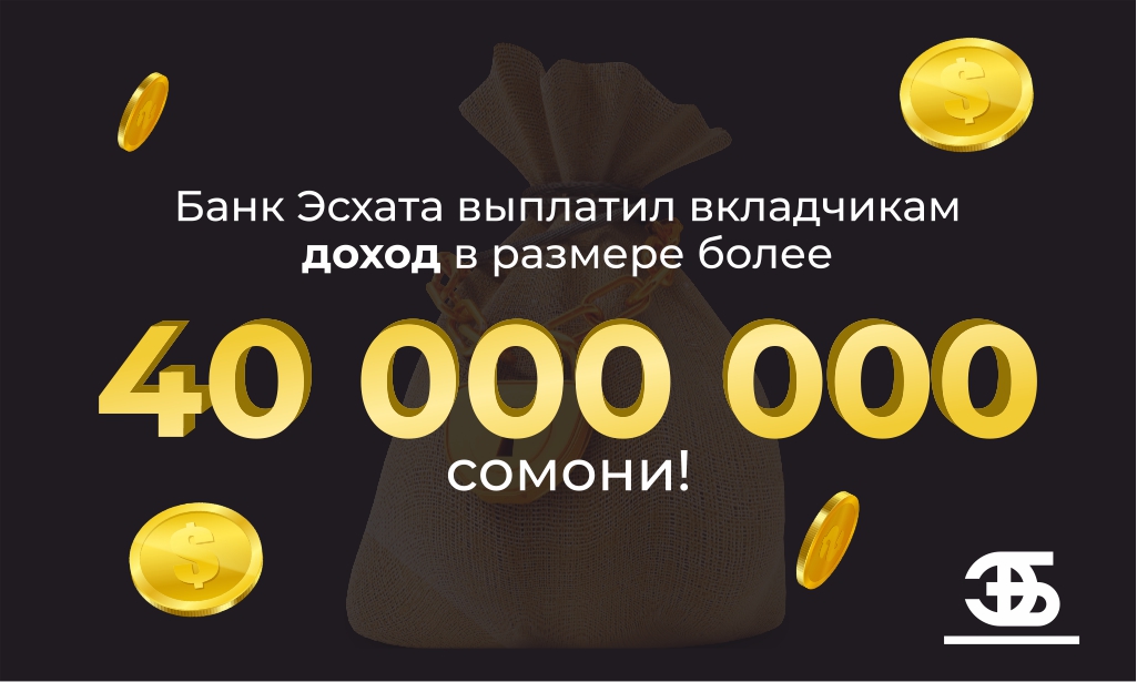 Только за 2020 год сумма выплат процентов по вкладам в Банке Эсхата составила более 40 миллионов сомони.