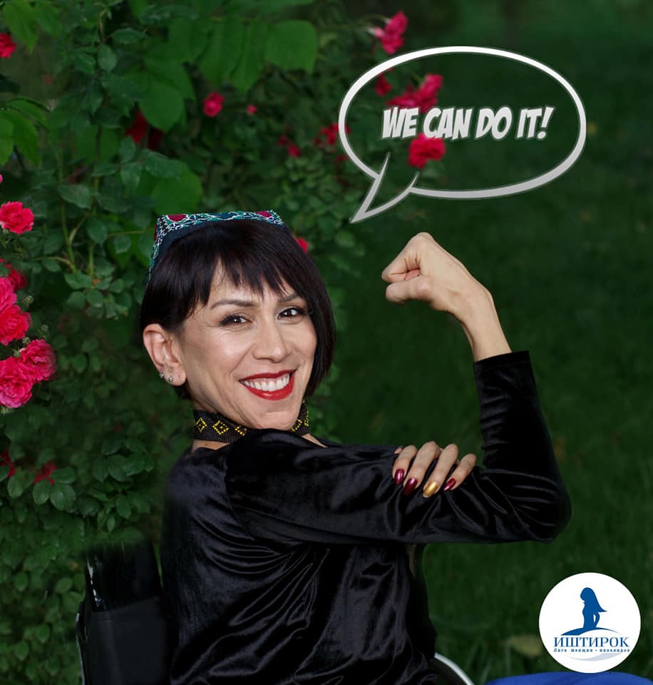«Выбрали именно этот лозунг потому, что нам хотелось показать, что женщины наравне с мужчинами могут заниматься любым делом. Мы хотим побороть предубеждения общества о том, какой «должна быть» женщина с инвалидностью, донести до людей, что девушки с инвалидностью также, как и все могут достигать высот», — объясняет Саида Иноятова.