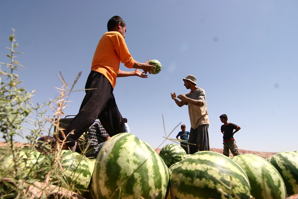 Сезон арбузов в Таджикистане продолжится до октября. С наступлением прохладной погоды они перестают расти и плодиться. Последними собирают арбузы с богарных полей: они по размеру маленькие, зато очень сладкие.