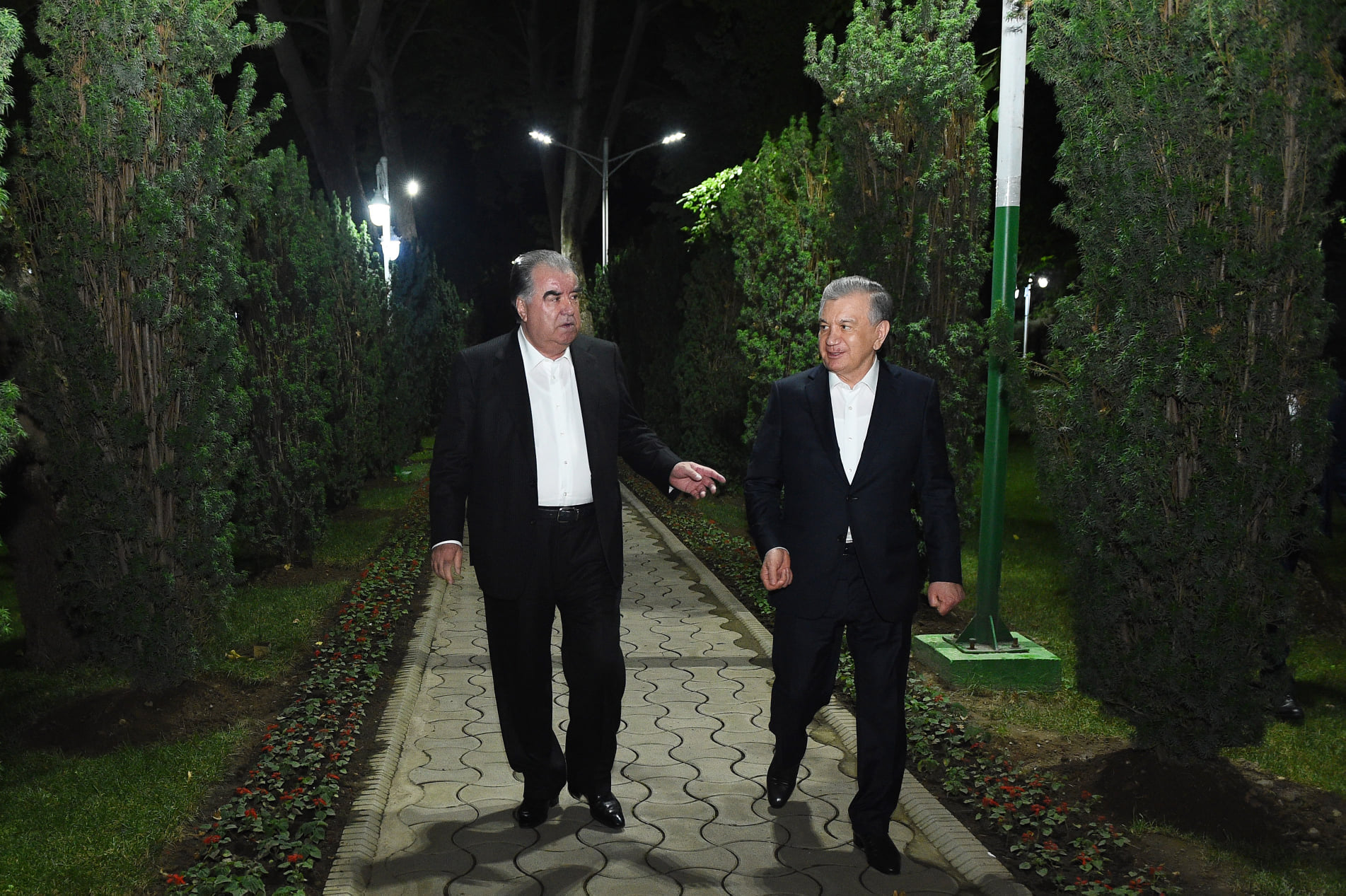 Шавкат Мирзиёев и Эмомали Рахмон совершили прогулку по парку резиденции, где лидер Таджикистана лично посадил плодовые и декоративные деревья, отмечается в сообщении.