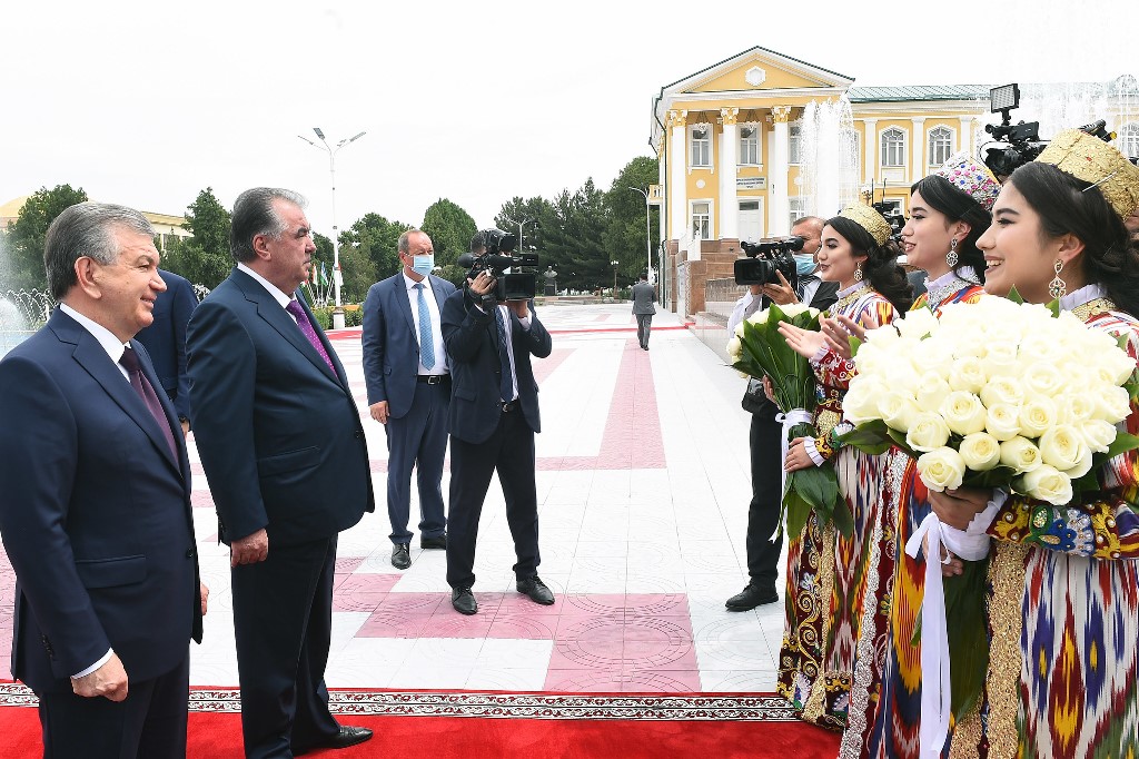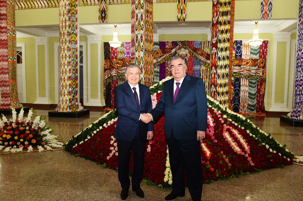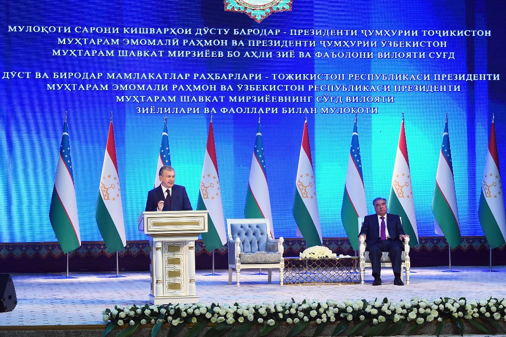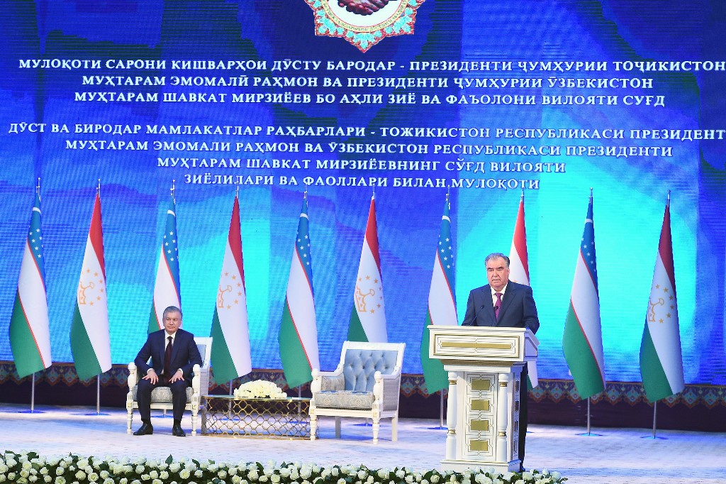Президент Узбекистана Шавкат Мирзиёев вместе с Эмомали Рахмоном в Согдийской области посетили разные объекты и встретились с представителями интеллигенции.
