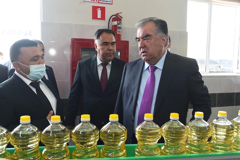 Глава государства здесь же принял участие в открытии цеха по производству растительного масла — единственного инновационного цеха в Таджикистане, где производство рафинированного масла осуществляется в несколько этапов — дезинфекции, отбеливания, охлаждения и упаковки.