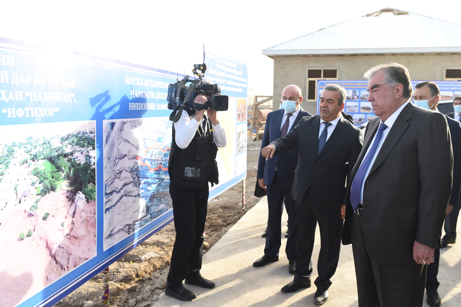 Сегодня же президент посетил Вахшский район и ознакомился с ходом работ по строительству и устранению последствий стихийного бедствия на пострадавших участках.