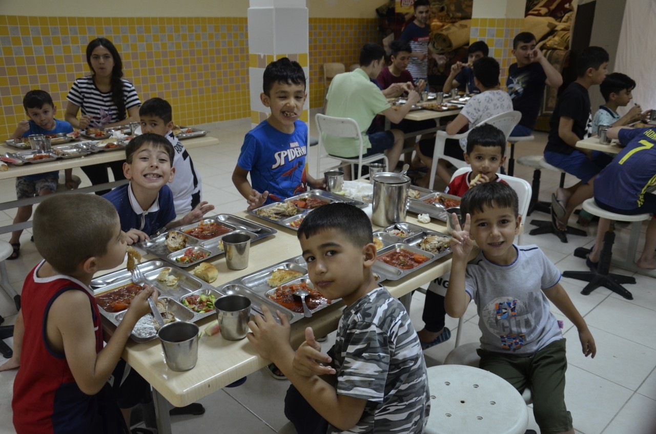 Детей размещают в комфортабельных корпусах, в боксах на 4-6 человек. Они сами выбирают себе соседей по комнате, так как знакомятся ещё по пути в лагерь. В столовой дети получают пятиразовое питание, причём пища готовится по-домашнему высококвалифицированными поварами.