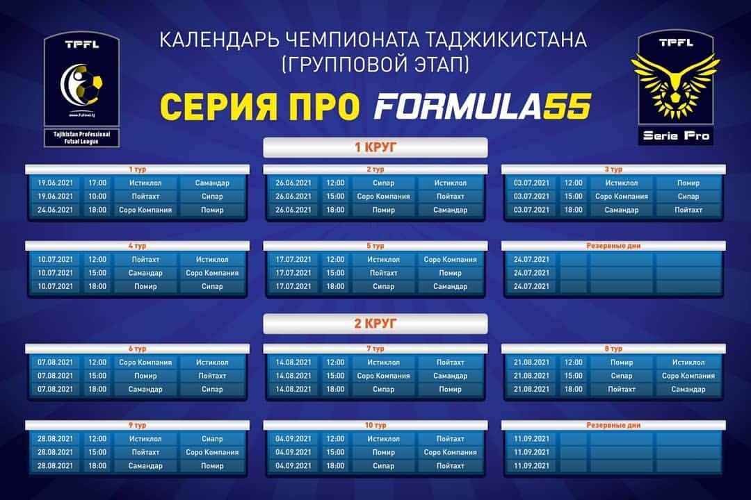 Представляем календарь футзального турнира «Formula55 Serie Pro» Сохраните у себя и будьте в курсе, когда состоится игра вашей любимой команды!