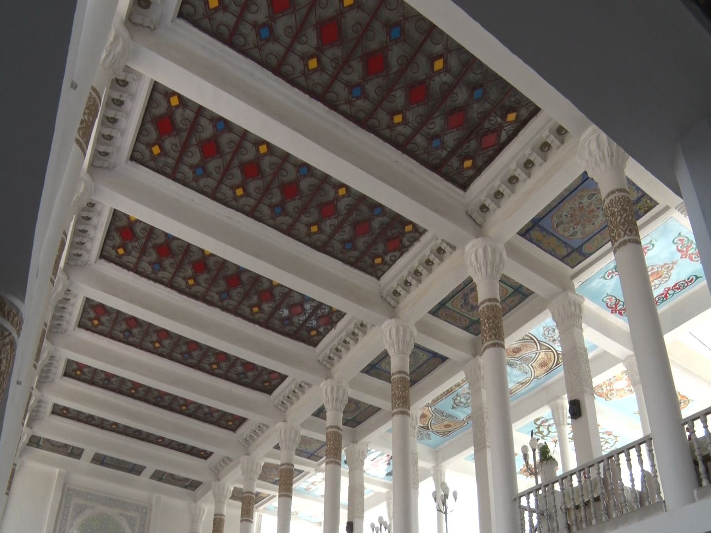 Это двухэтажное здание, оформленное в национальном стиле, имеет открытые террасы, колонны, расписные потолки и стены, мозаику из цветного стекла. В те годы данная архитектура являлась нововведением для восточного декора здания. Применение цветного стекла на потолке чайханы в солнечное время придавало интерьеру особый колорит.