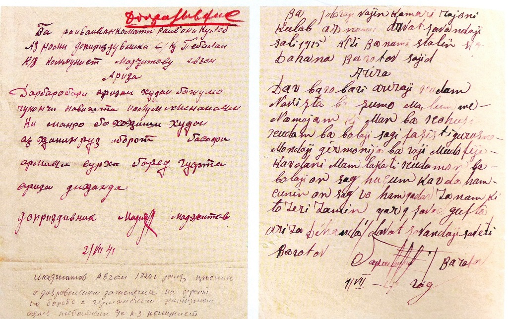 В июне 1941 года первый Герой Советского Союза из Таджикистана Негмат Карабаев направил телеграмму Правительству Таджикской ССР, где есть такие строки: