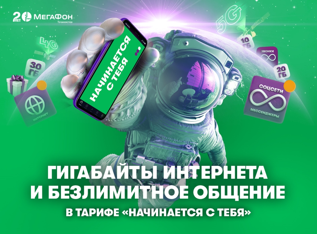 К своему 20-летию «МегаФон Таджикистан» предложил абонентам новую линейку тарифов «Начинается с тебя». Новая линейка тарифов, не имеющая аналогов на телеком-рынке страны по соотношению цены и объема интернет-трафика, включенного в пакеты услуг – это подарок оператора для всех интернет пользователей страны.