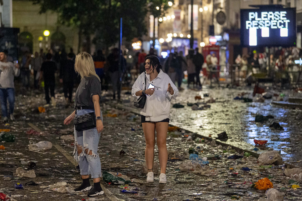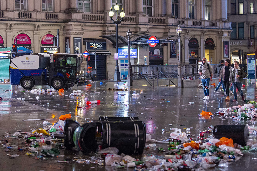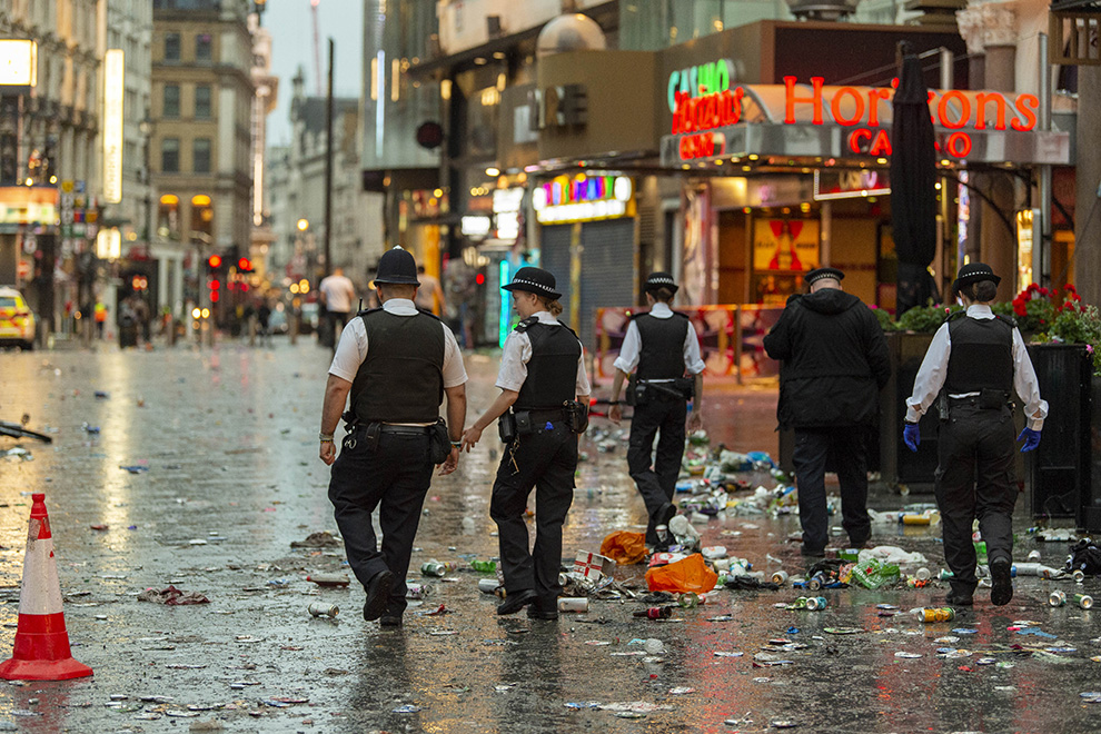 За нарушение порядка были задержаны 45 человек, сообщила лондонская полиция. Как выглядят улицы Лондона после финала Евро-2020 — в фоторепортаже Forbes