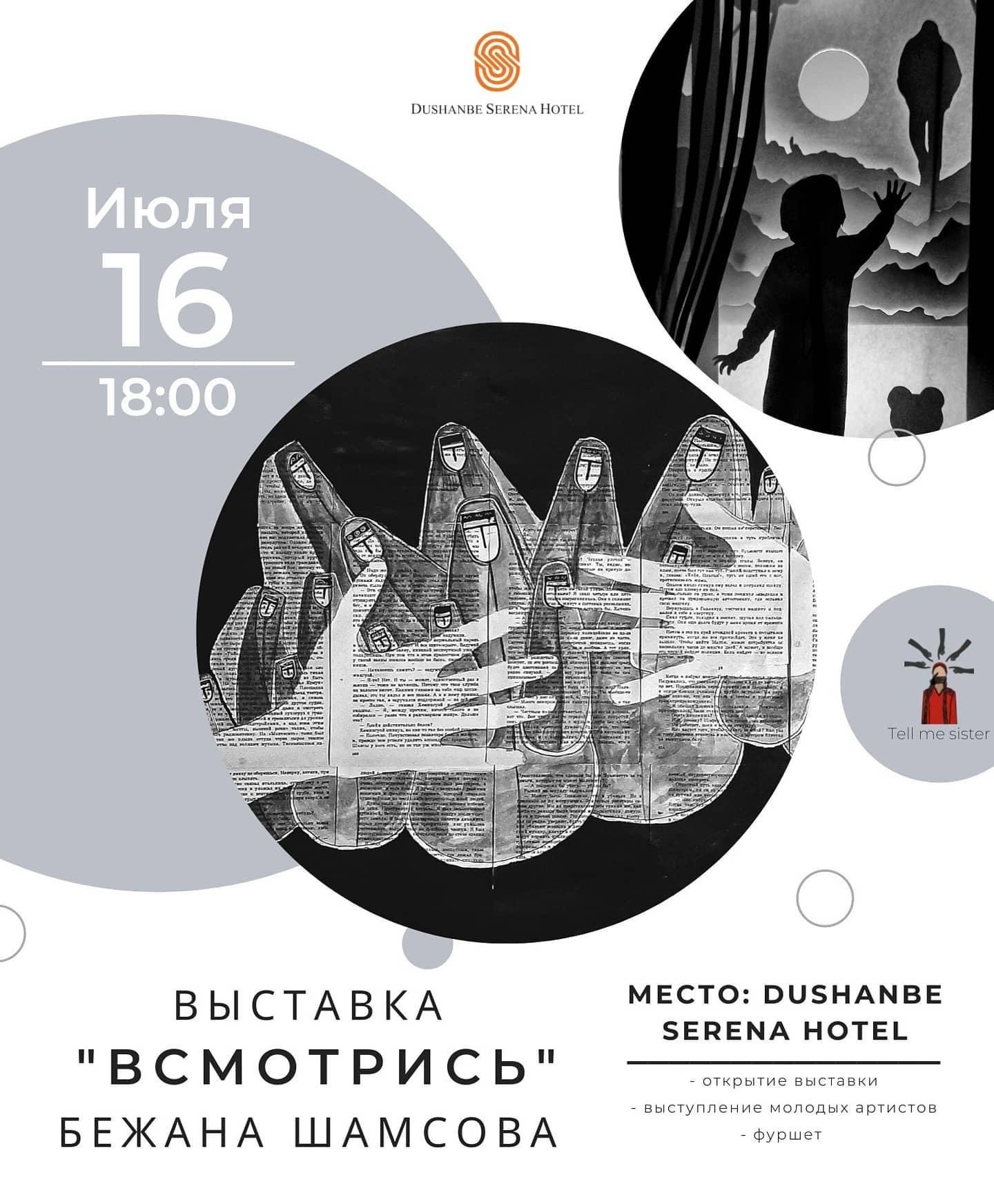 16 июля в 18:00 состоится церемония открытия выставки картин "Всмотрись". Она будет проходить в чайхане "Машрабия" гостиницы "Серена Душанбе" (1 этаж).