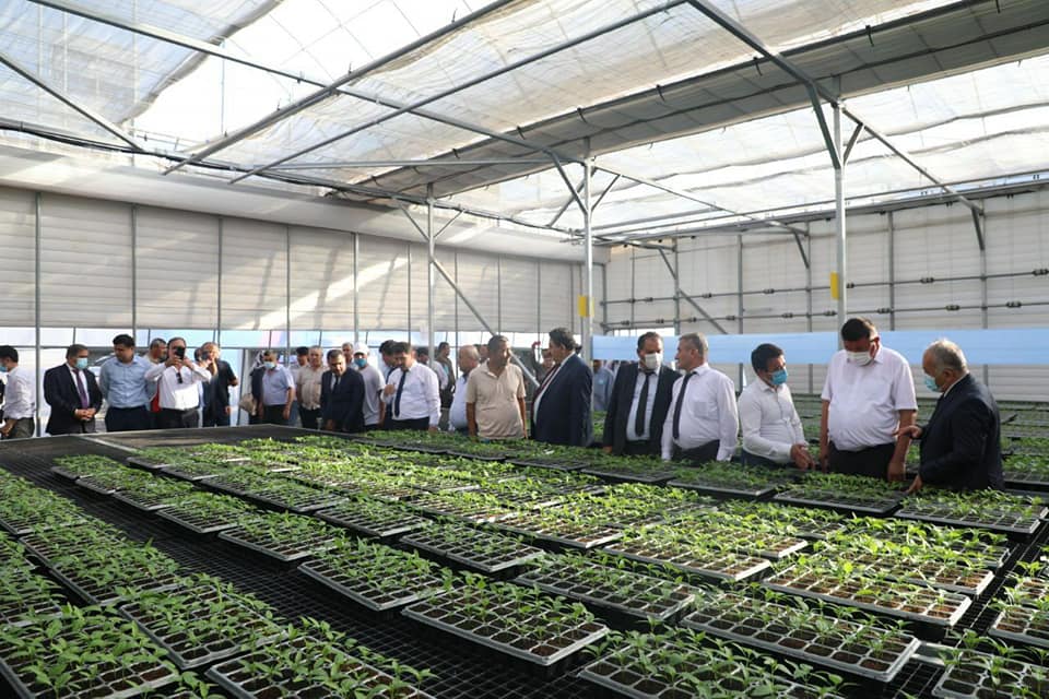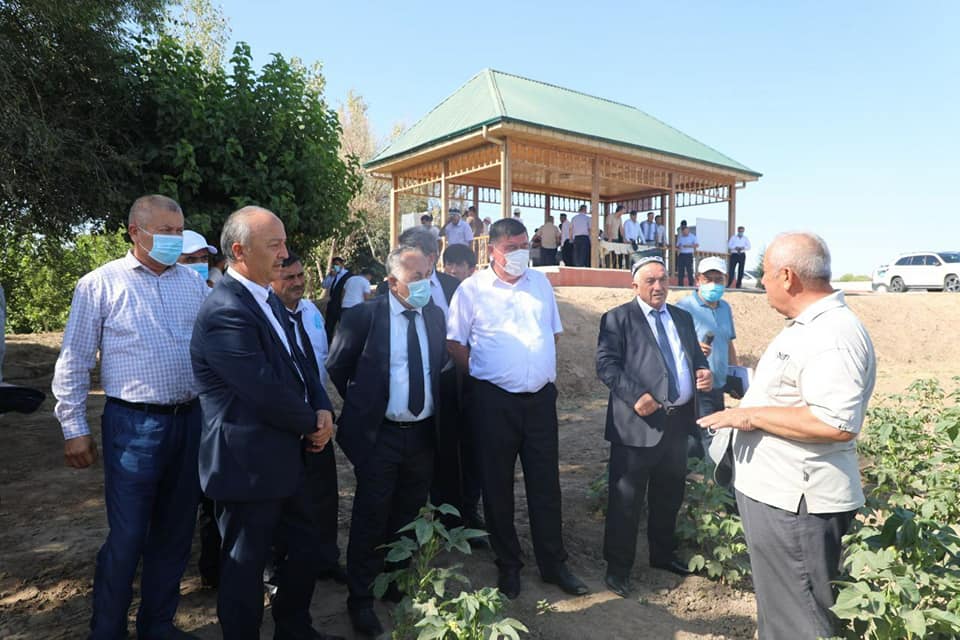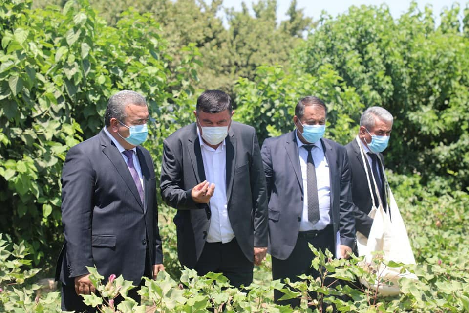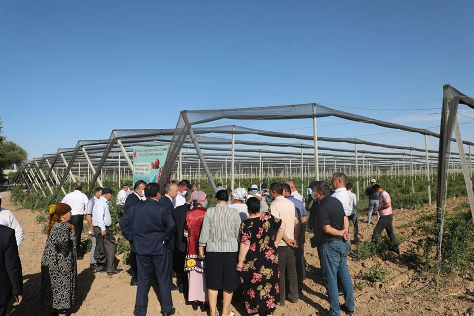 Таджикская делегация посетила гранатовый сад ООО «Сардорбек Султонбек» в районе Шеробод, теплицы, хлопковые поля.