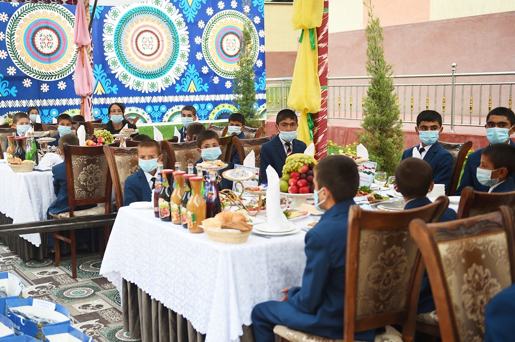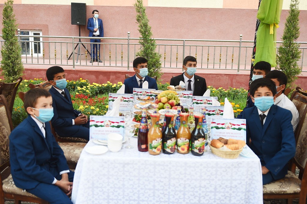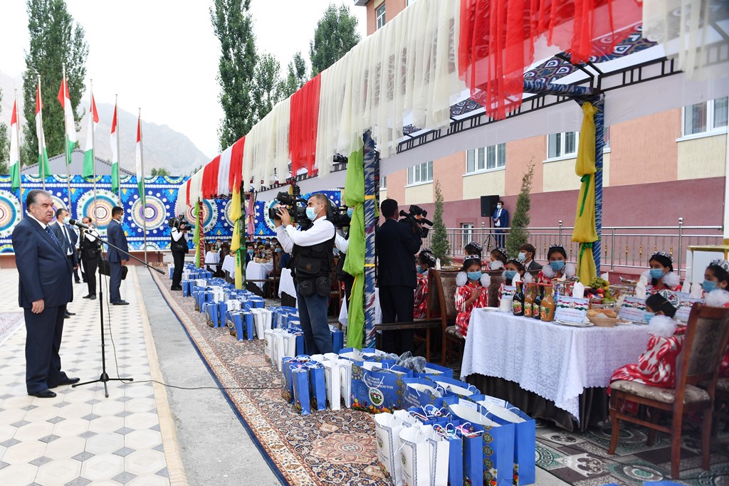 По традиции глава государства вручил подарки круглым сиротам сельского джамоата Анзоб и 40 подросткам Ягнобской долины Айнинского района.