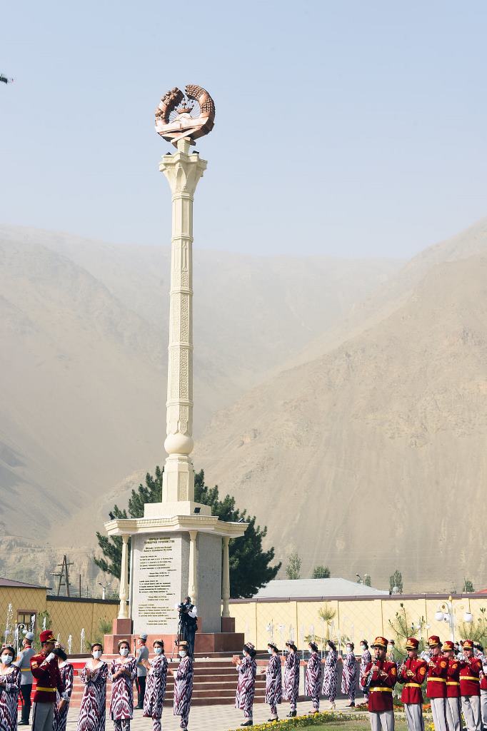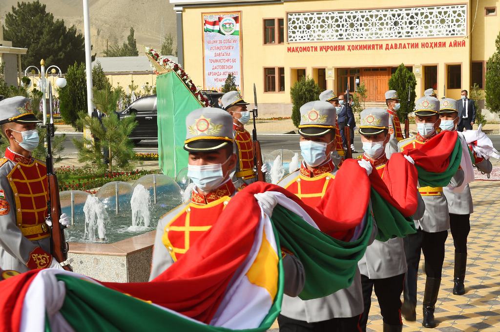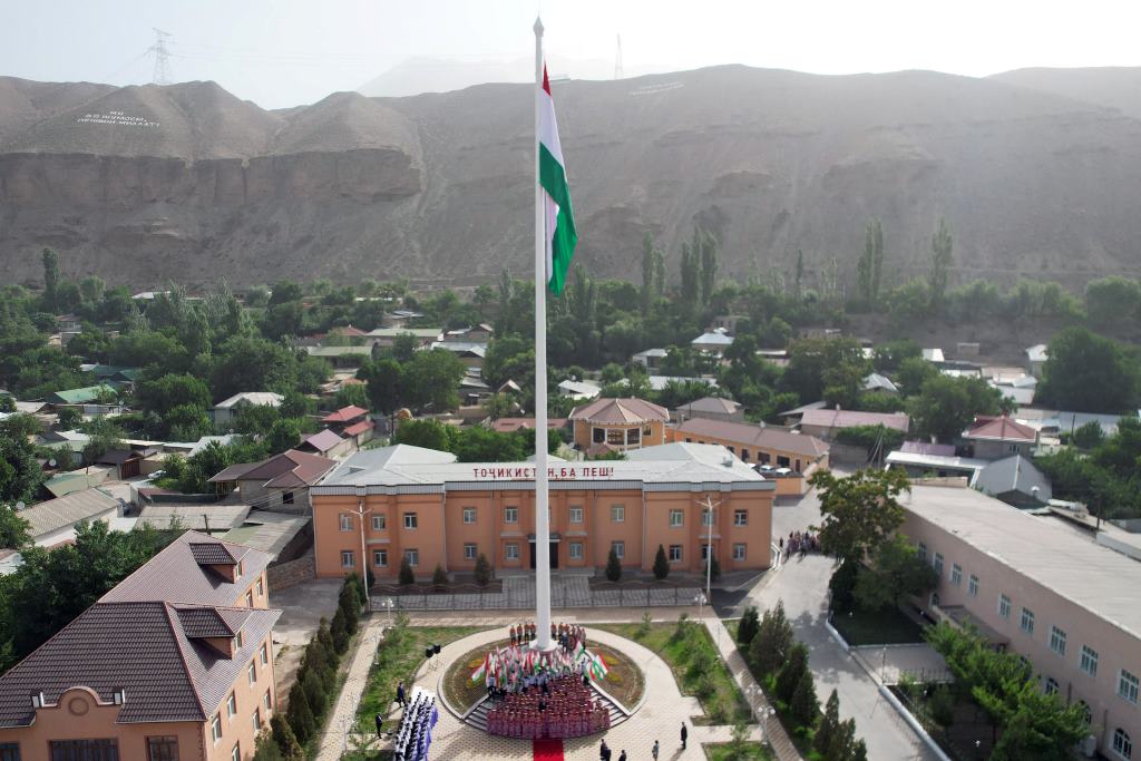 Площадь Государственного флага, прилегающая к трассе «Душанбе-Худжанд-Чанак», построена ООО «Зарафшон-Сохтмон» по заказу хукумата Айнинского района.