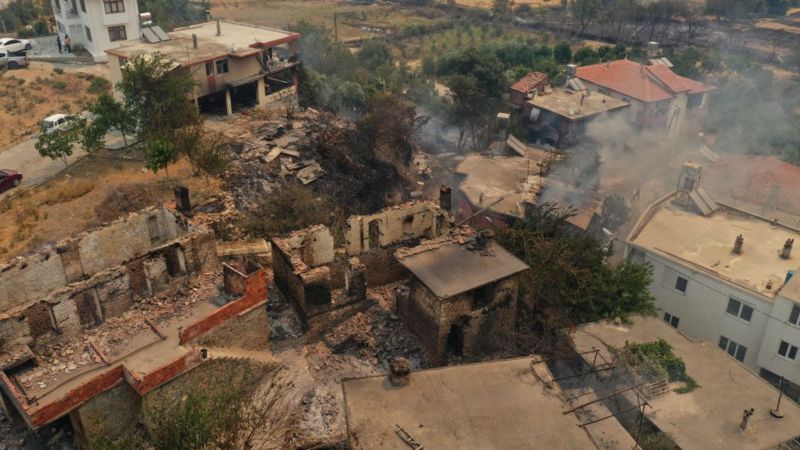 Огонь уничтожил более 20 жилых домов и фермы. Животные после эвакуации хозяев порой остаются в зоне пожара. По словам представителя администрации президента Турции Реджепа Эрдогана, в пламени погибло 150 коров и тысячи голов мелкого рогатого скота.
