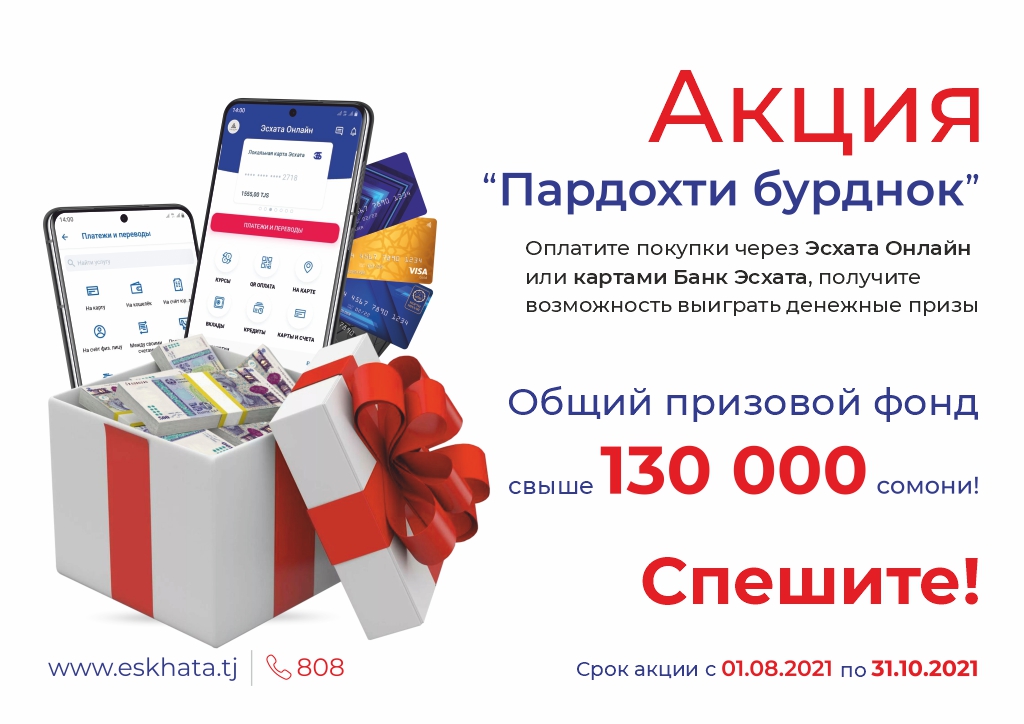Банк Эсхата объявляет новую акцию под названием «Пардохти бурднок»!
