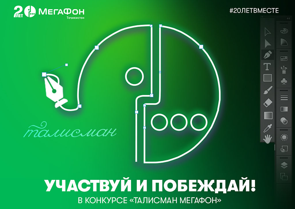 В преддверии своего юбилея первый оператор новых цифровых возможностей предлагает дизайнерам и всем, кто любит рисовать, создать графический образ 20-летия. Этот талисман будет использоваться в печатной продукции, на интернет-ресурсах. Также на его основе будет создан стикерпак для мобильного приложения «МегаФон Life».