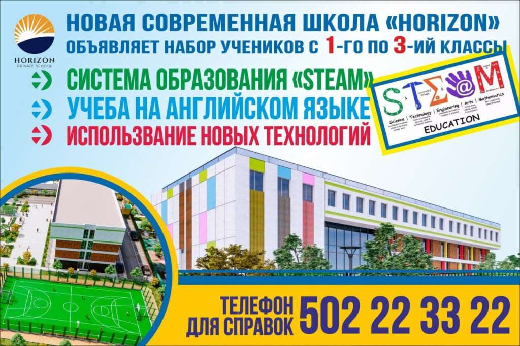 Строительство здания новой частной школы Horizon в стадии завершения, и в данный момент проводится активный набор учеников. Просторный школьный участок занимает 1.4 Га, на котором располагаются: современное 4-х этажное здание с подвалом и актовым залом; спортивная и детская площадки; уютный сквер для отдыха в тени деревьев.
