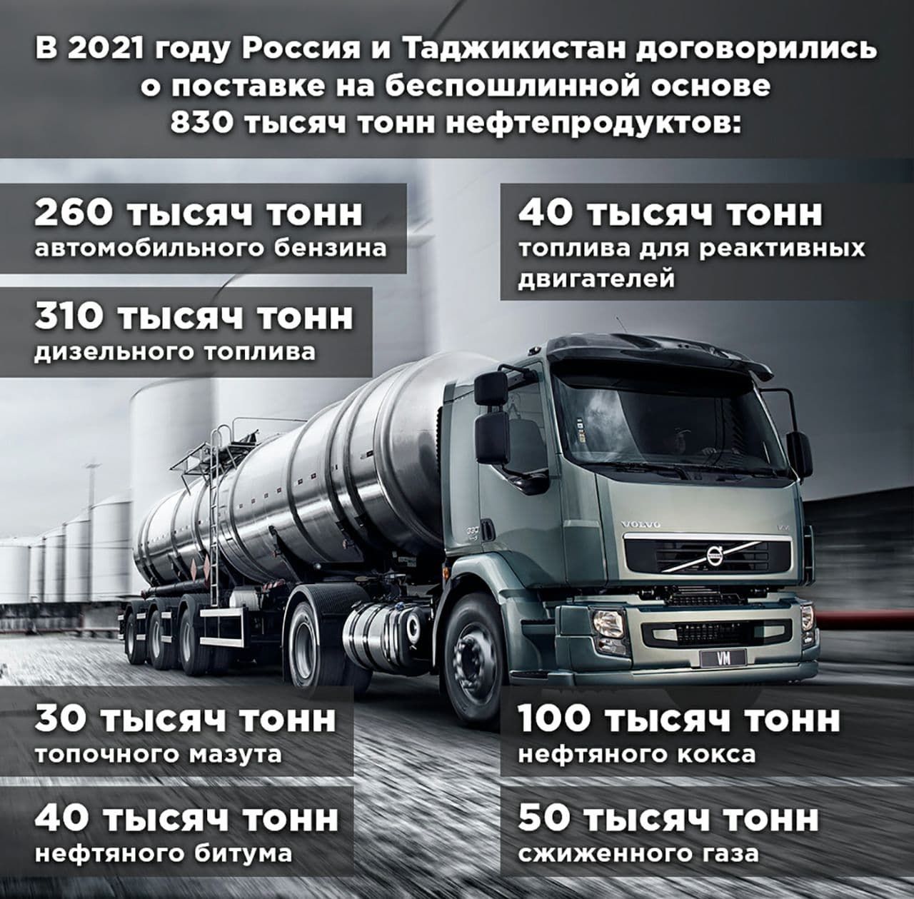 За 6 месяцев этого года в Таджикистан, как сообщается, было ввезено около 262 тыс. тонн нефтепродуктов на общую сумму около 146 млн долларов. Объем импорта в сравнении с этим же периодом прошлого года уменьшилась по весу на 11 %, а по цене на 1,1 %.