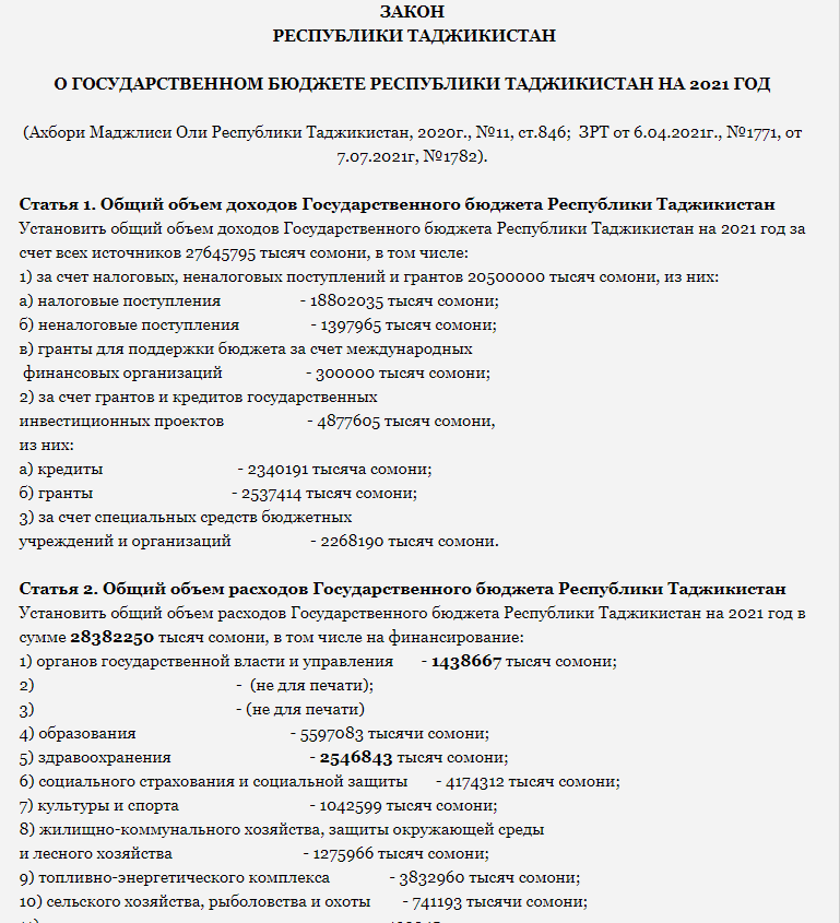 Однако Министерство финансов Таджикистана по прежнему не публикует данные о гражданском бюджете — нетехнической версии госбюджета, которую составляют для того, чтобы широкая общественность лучше понимала, на что тратятся средства государства.
